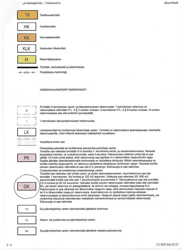 | Rakennusoikeudet | Omakotikortteli tai korttelinosa omakotitaloja varten. Tonteille saa rakentaa vain yhden asuin- ja yhden talousrakennuksen. kts. kaavamääräykset Lisätietoja kaavamääräyksistä. |