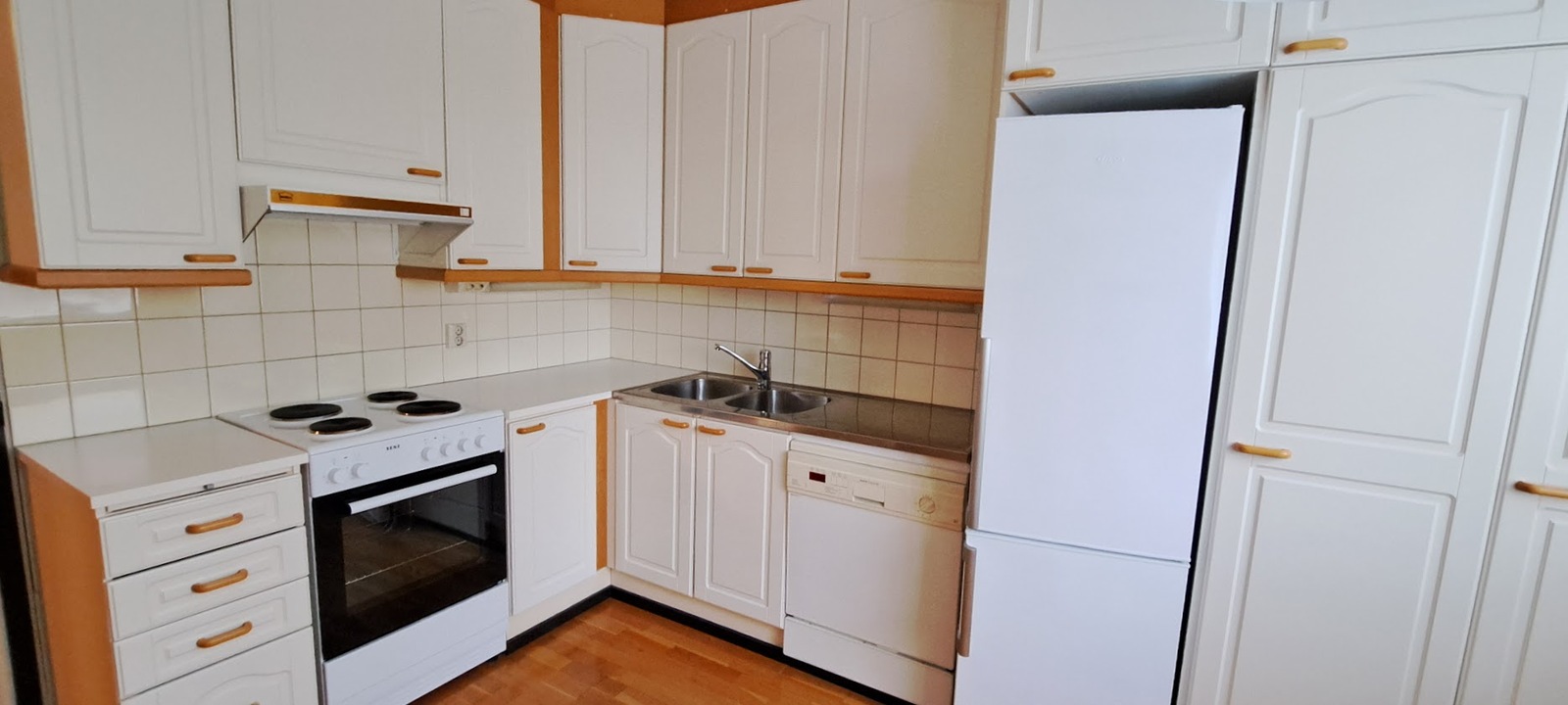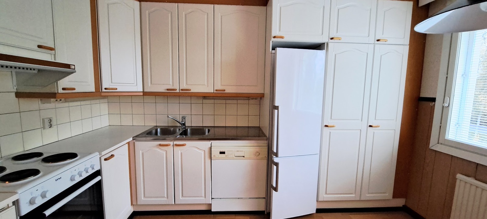 | Keittiön kuvaus | Keittiötä uusittu 2000 luvun alussa. Astianpesukone vanha eikä sitä ole käytetty pitkään aikaan. |