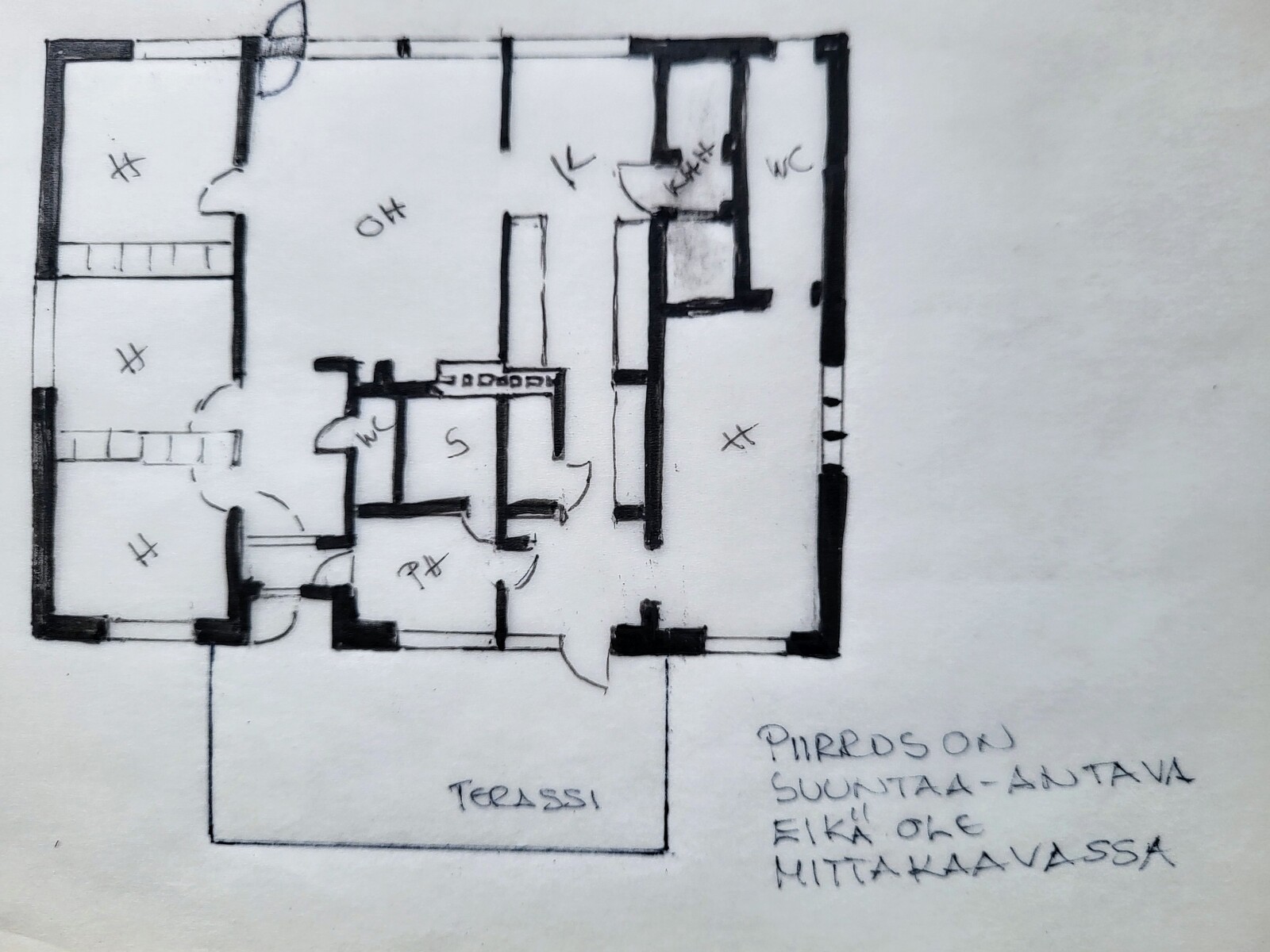 | Lisätietoja pinta-alasta | pinta-alaa ei ole tarkistusmitattu lisäksi katettu terassi n. 30 m2. |