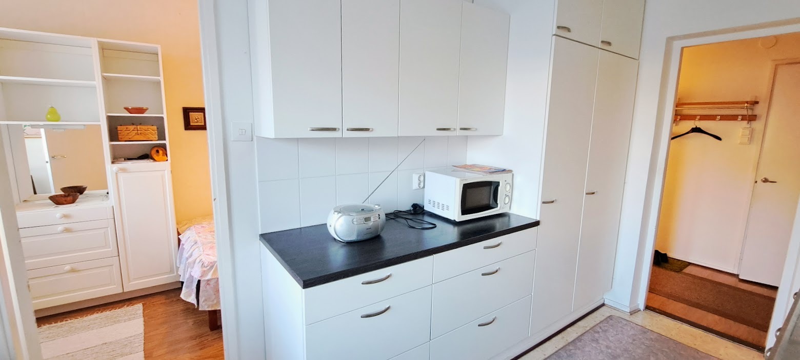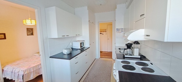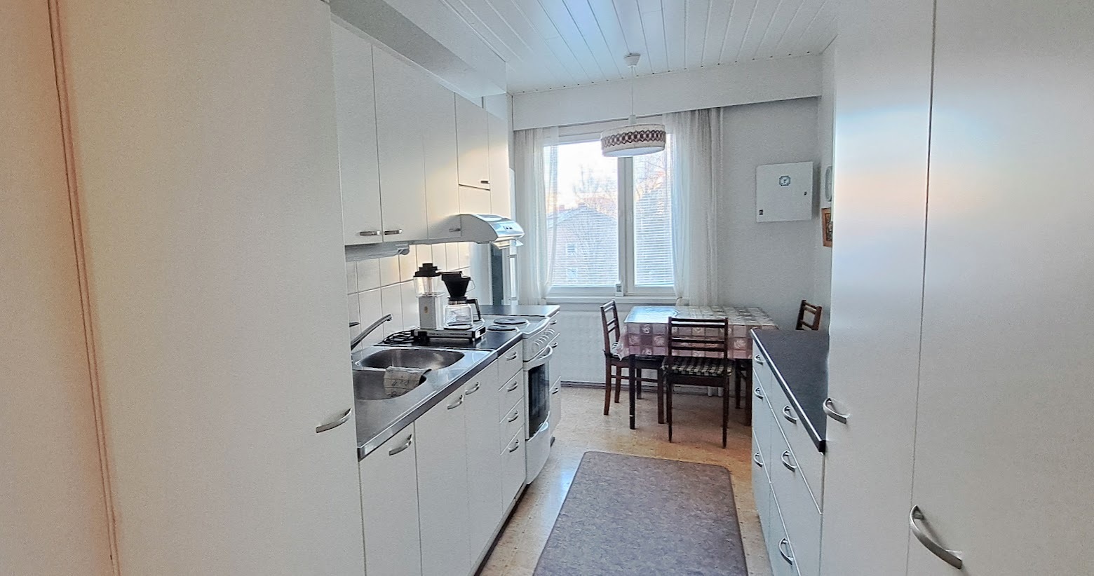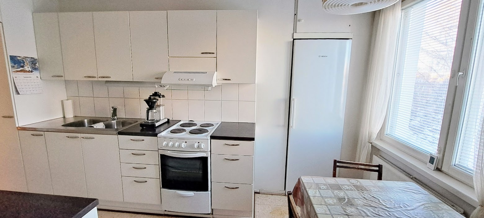 Hyvässä yhtiössä neljännen kerroksen huoneisto, missä vaalea keittiö ja pesutilat remontoitu samaan aikaan kuin putkiremontti tehtiin. Pintoja jokainen voi tehdä mieleisekseen tai palvelee noin. Tien toisella puolella on kauppa ja Kampuskin löytyy läheltä.